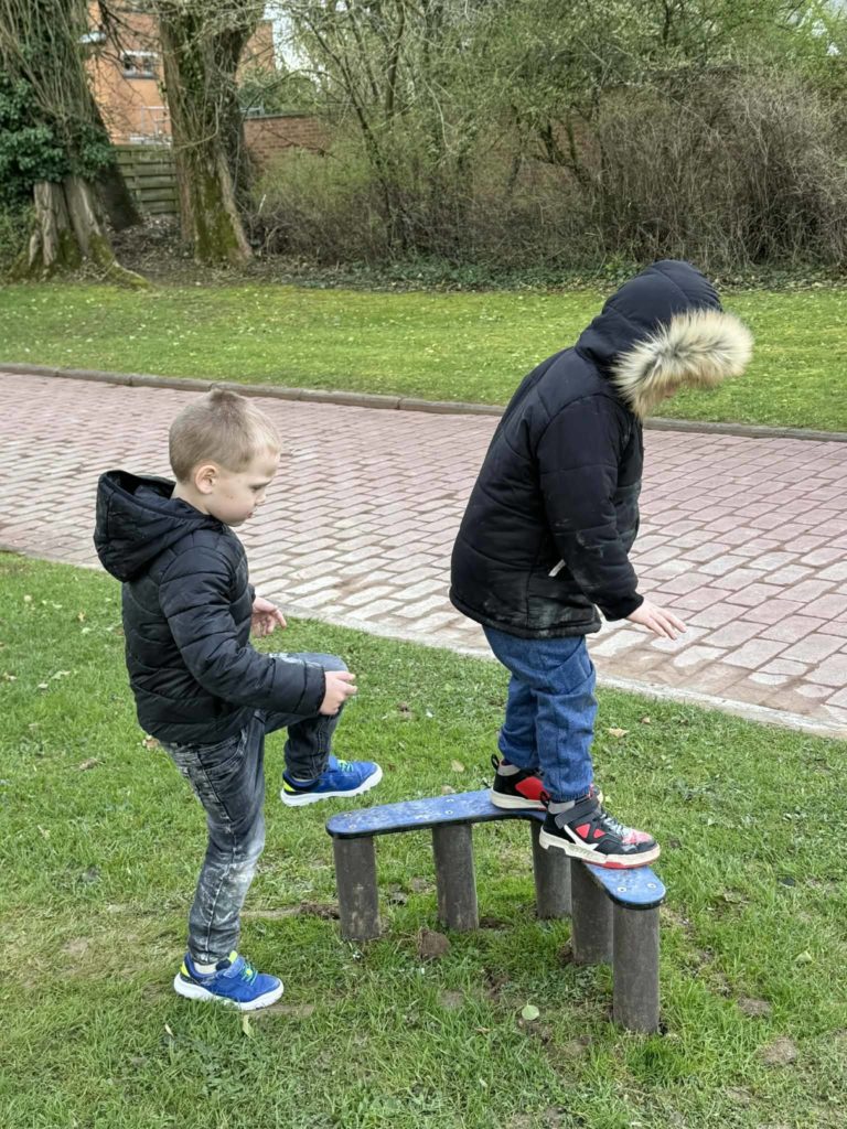 Nos petits loups de maternelle testent le nouveau parcours de jeux extérieurs