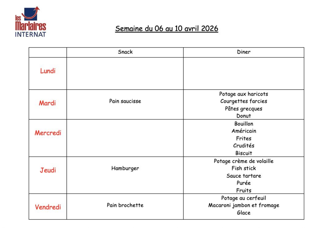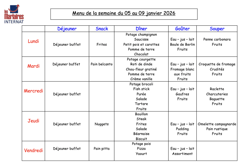 Menu de la semaine