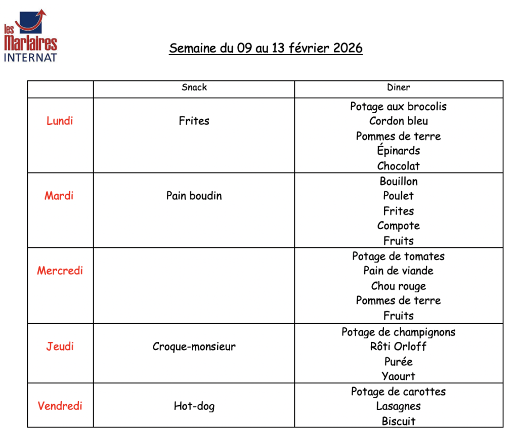 Menu de la semaine